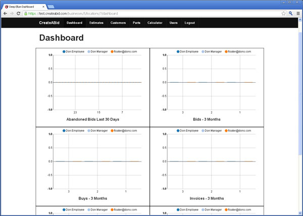 Quickly review estimates that are in the system from your dashboard. Here you have the ability to see what estimate are open, closed or in production in real time. Review activity from each sales person creating estimates. If you have multiple locations, you can compare estimate status of each location as well as review individual locations.